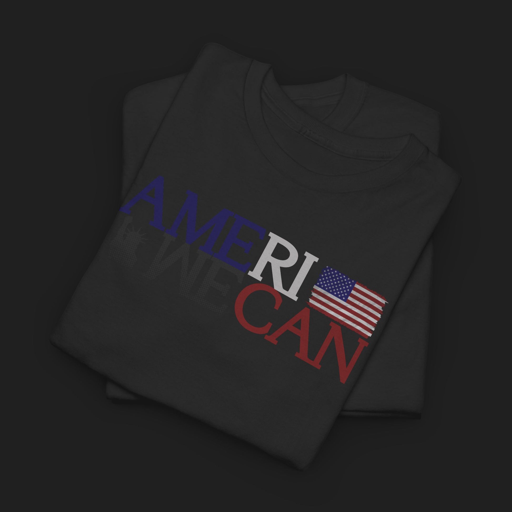 Wear it because together — WE CAN.This design takes the word AMERICAN and reflects it — revealing the powerful truth hidden inside: WE CAN. It’s more than a graphic; it’s a declaration of unity, freedom, and resilience. The reflection transforms identity into possibility, reminding us that strength is collective and the future belongs to those who rise together. Perfect for any day you want your shirt to speak louder than words.